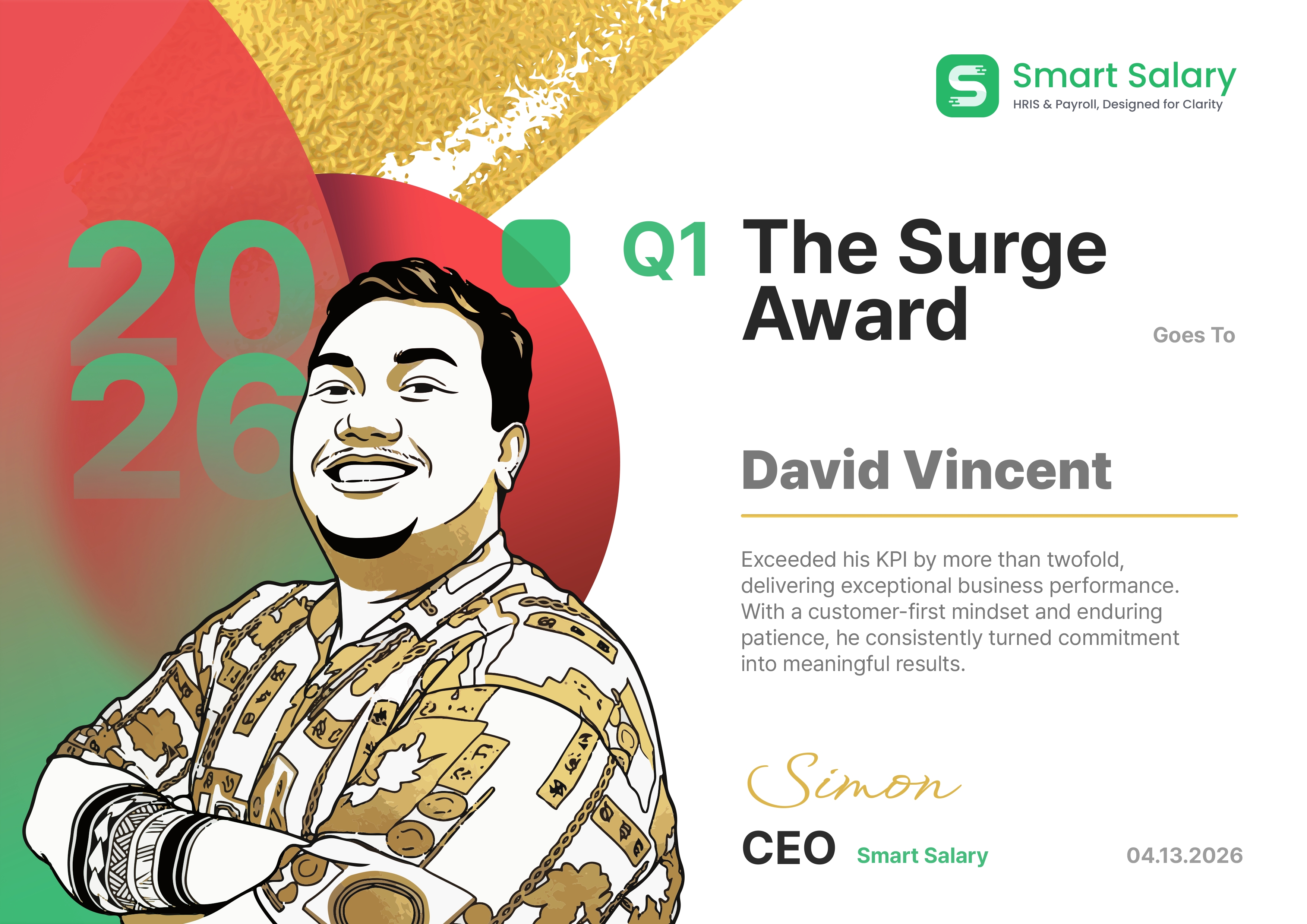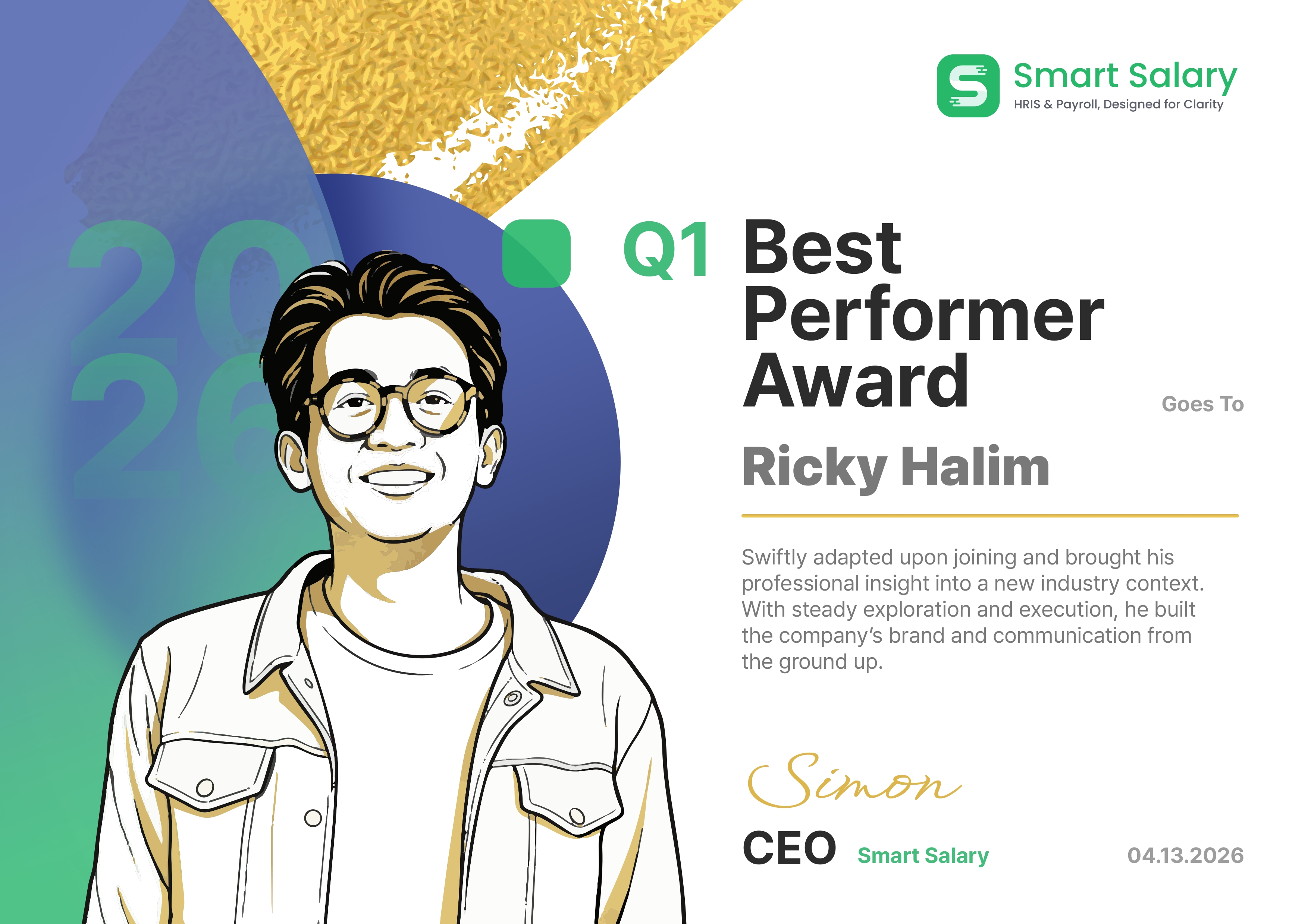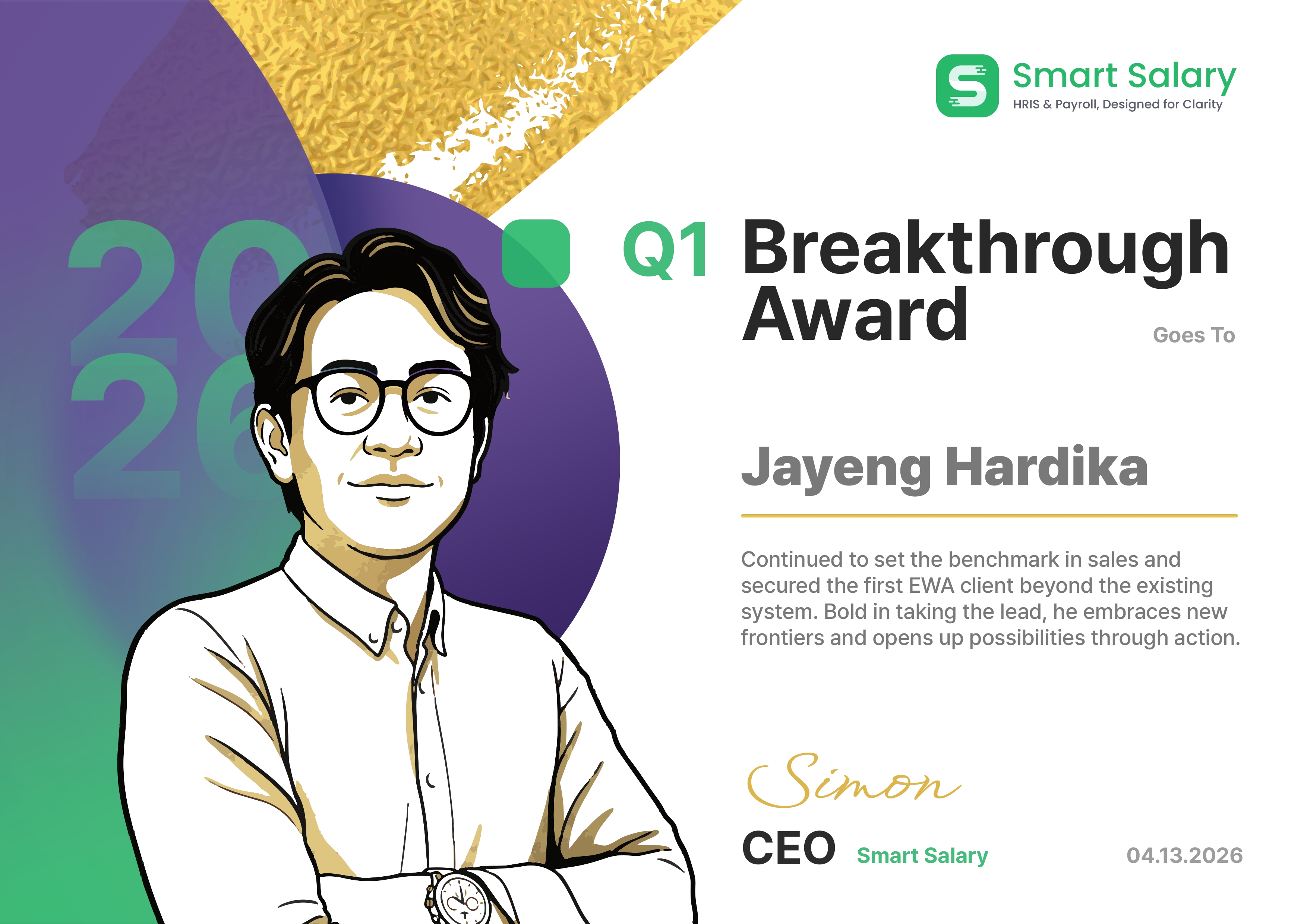Simon Li, selaku CEO Smart Salary, menyampaikan apresiasi terdalamnya kepada seluruh tim atas pencapaian gemilang ini. “Pencapaian di kuartal ini benar-benar luar biasa, dan saya sangat bersyukur serta berterima kasih atas kerja keras yang telah dicurahkan oleh setiap individu. Melihat fondasi yang kuat ini, saya sudah tidak sabar menantikan kejutan, pencapaian, dan inovasi hebat apa lagi yang akan kita ciptakan bersama di masa depan,” ujarnya dengan penuh antusiasme.