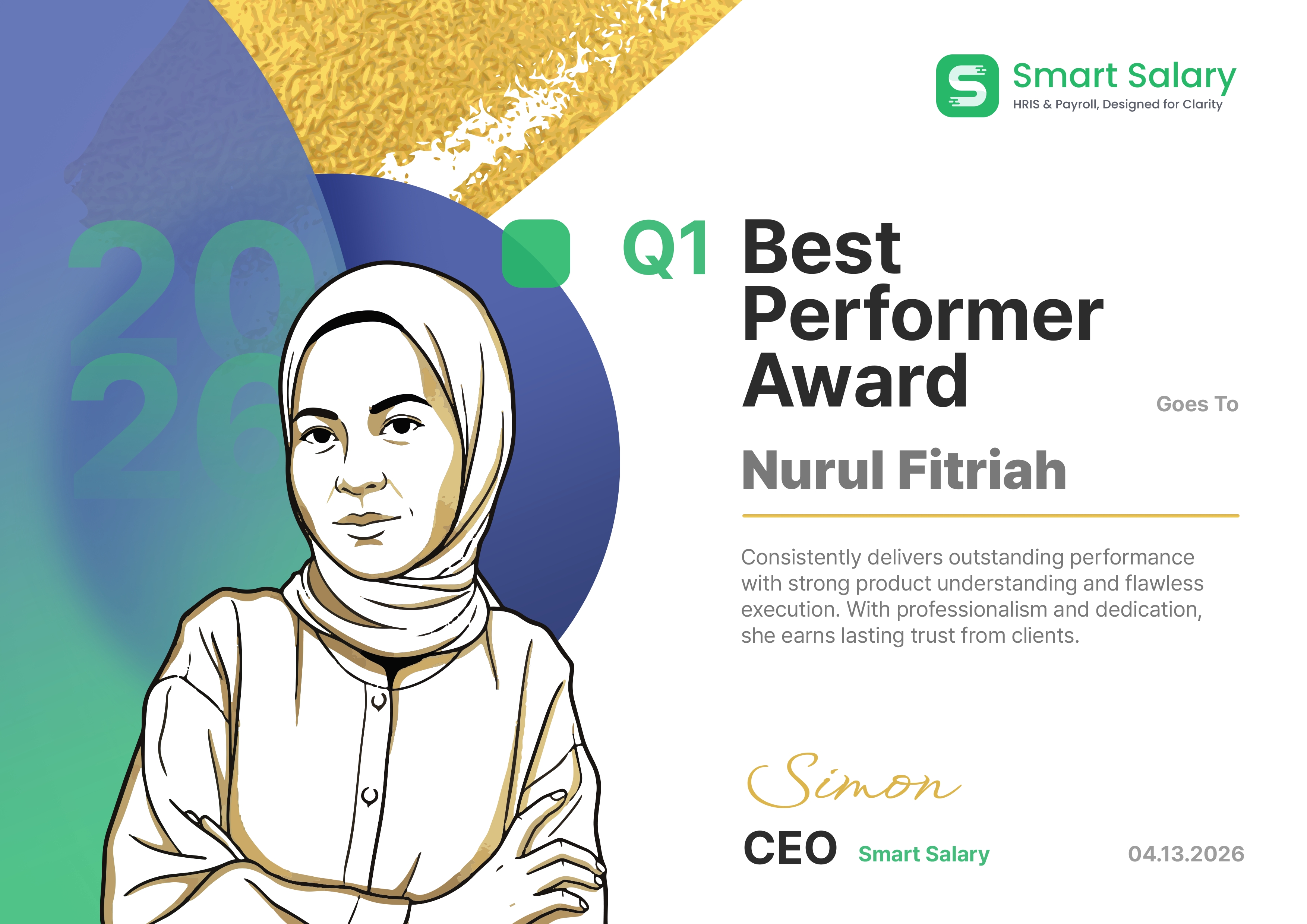 Perjalanan Smart Salary di kuartal pertama tahun 2026 telah membuktikan bahwa sinergi dan tekad yang kuat mampu membuahkan hasil yang luar biasa. Sebagai penyedia solusi HRIS & Payroll terdepan, pertumbuhan kita sangat bergantung pada talenta-talenta andal di balik layar. Acara penghargaan internal Q1 ini menjadi momen berharga untuk merayakan mereka yang telah berani mendorong batas maksimal demi kemajuan perusahaan.